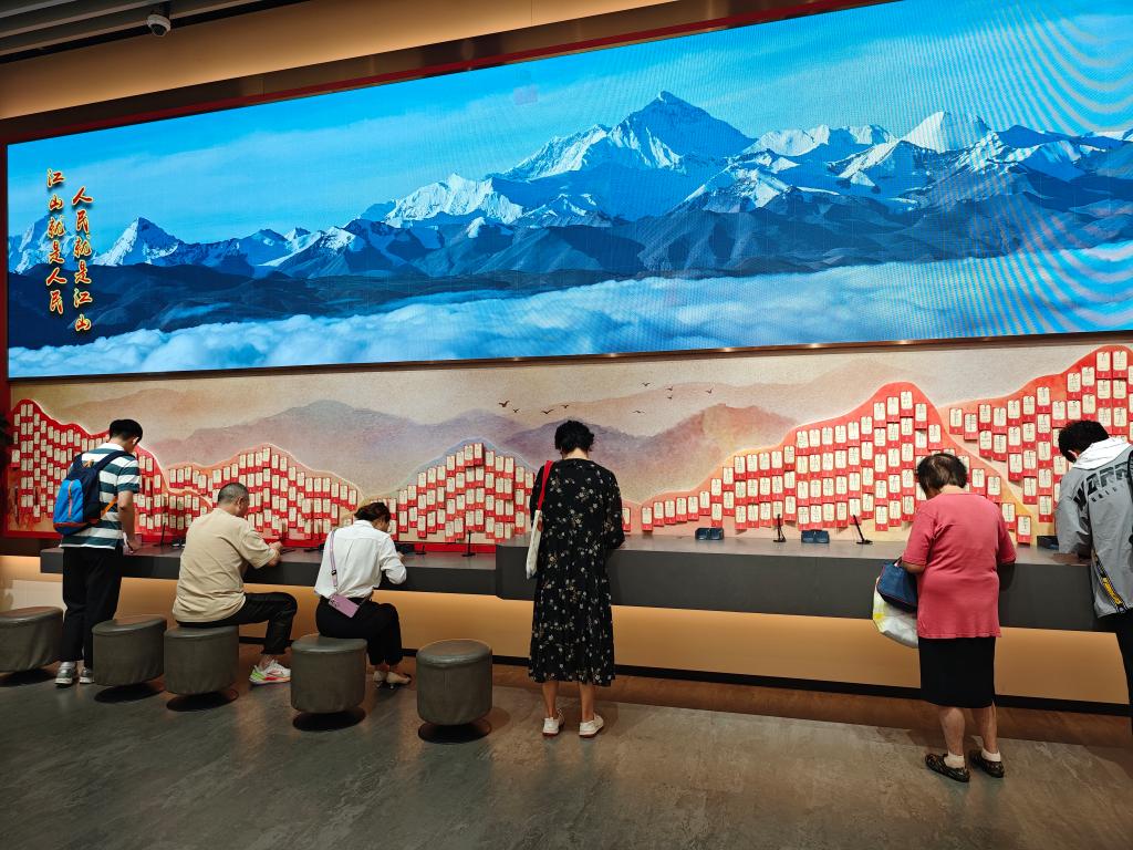 参观者在中共一大纪念馆留言墙前留言。新华社记者郭敬丹 摄