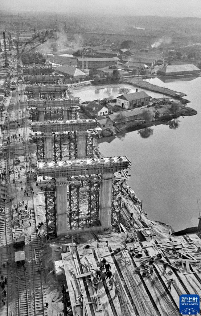 1951年12月,成渝铁路沱江大桥建成通车后,第一列火车通过大桥。新华社发