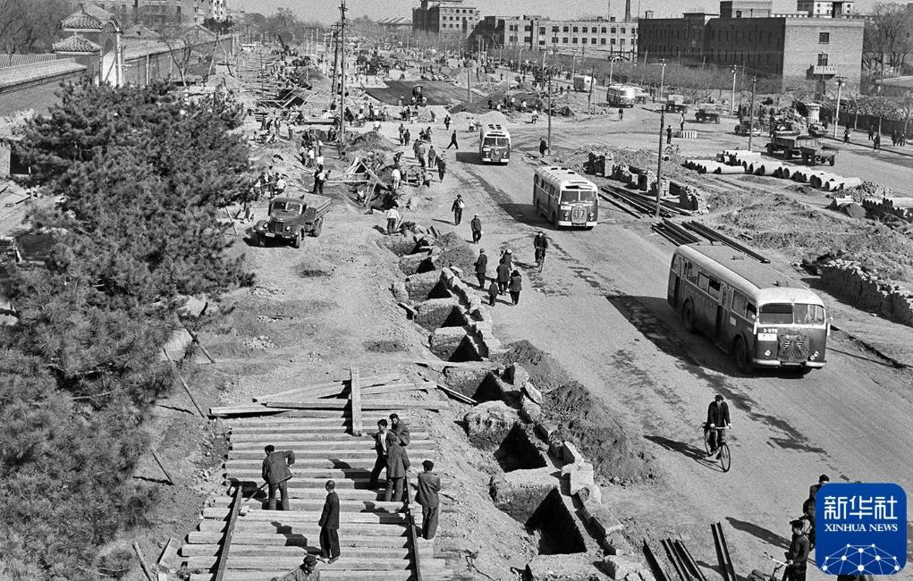 1959年3月,北京东长安街改造现场。新华社发 (中国照片档案馆馆藏)