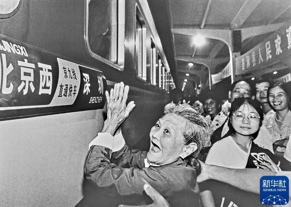 1996年9月1日,从北京开往深圳的105次列车第一次开进江西井冈山站,受到老区人民热烈欢迎。新华社发