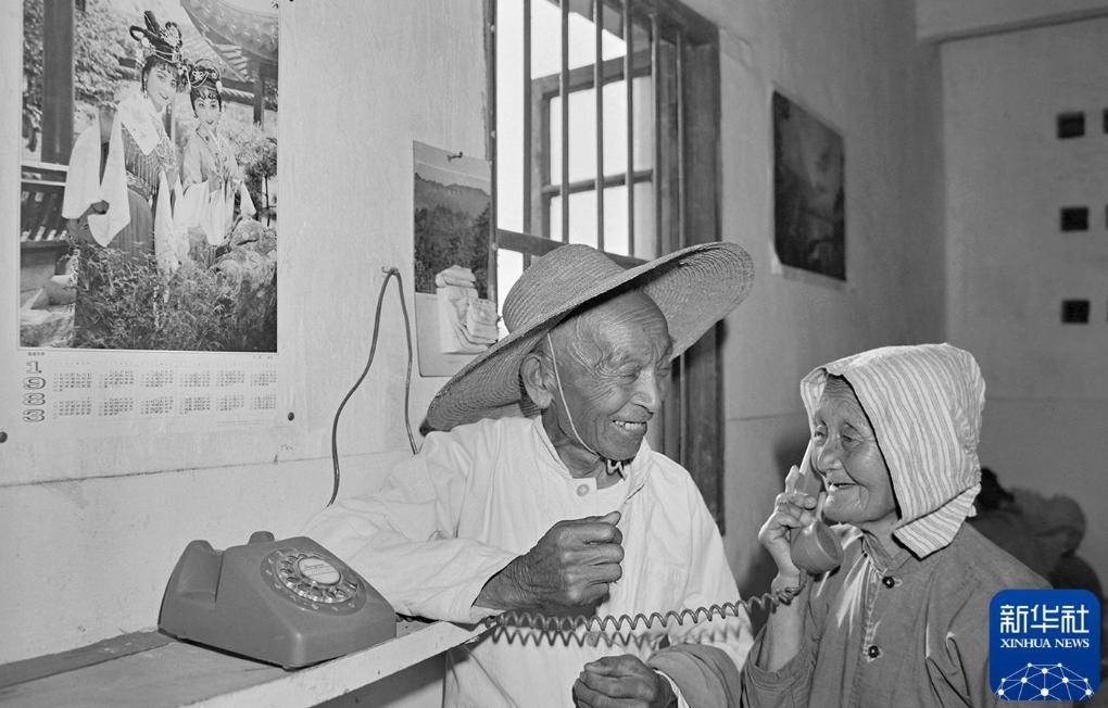 1983年6月,上海宝山县罗店公社农民在打电话。该公社38个农民新村都装上了公用电话,成为上海郊区农村最先实现村村通电话的公社。新华社记者 柳中央 摄