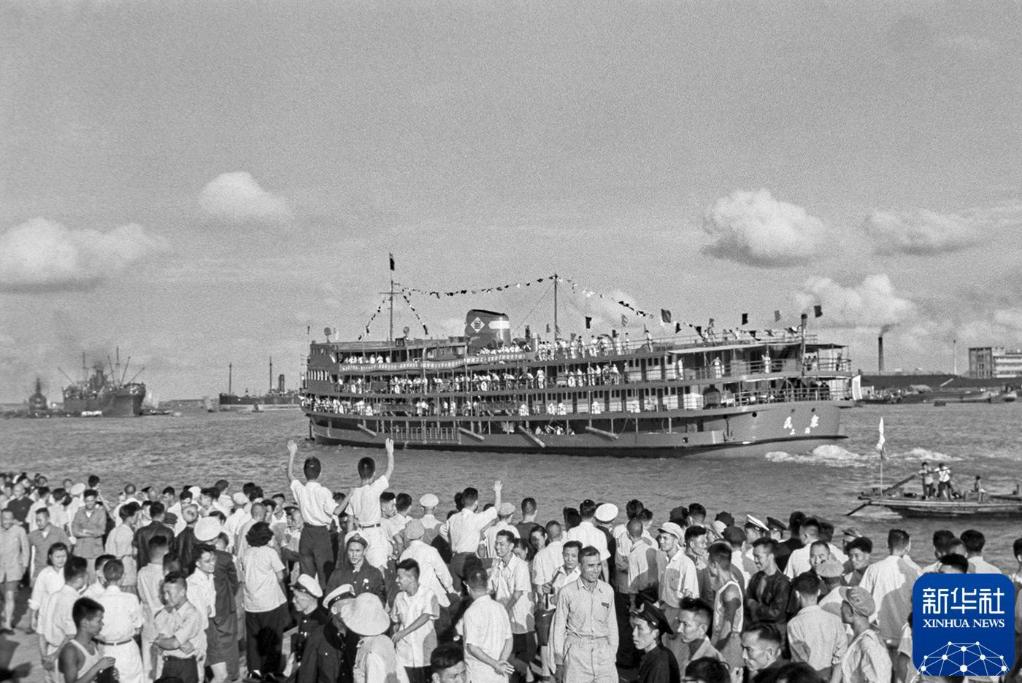 1954年9月6日,我国自制的第一艘大客轮“民众号”从上海离岸前往湖北宜昌,开始了它在长江上的首航。新华社记者 范杰 摄