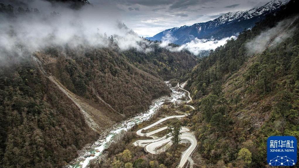 2017年3月30日,西藏墨脱公路上空云雾缭绕。2013年,墨脱公路正式通车,实现我国“县县通公路”。新华社记者 普布扎西 摄