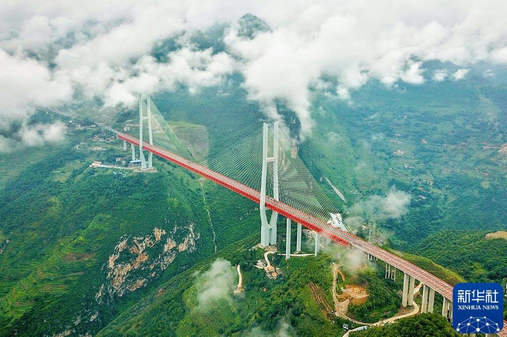 2018年8月9日,北盘江大桥跨越云南和贵州交界的大峡谷,大桥上空云雾缭绕。新华社记者 欧东衢 摄