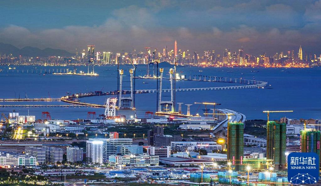 2022年6月,连接珠江口东西两岸深圳市和中山市的深中通道正在建设中。新华社发(黄春华 摄)