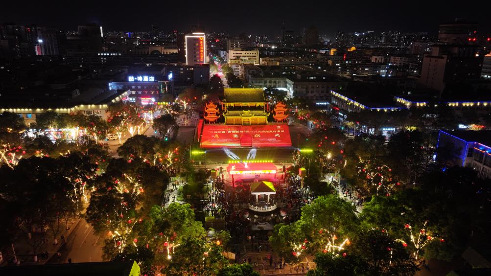 夜幕下的古城兴庆“点亮”银川之夜。新华社发