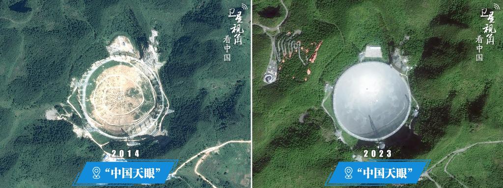 “中国天眼”全称500米口径球面射电望远镜,位于贵州省平塘县,是我国独立自主设计并建造的世界最大的单口径射电望远镜。工程于2011年3月动工兴建,2016年9月落成启用。
