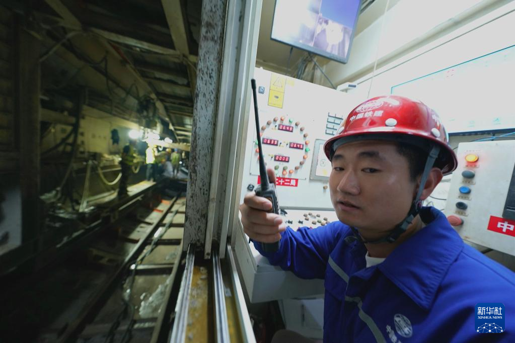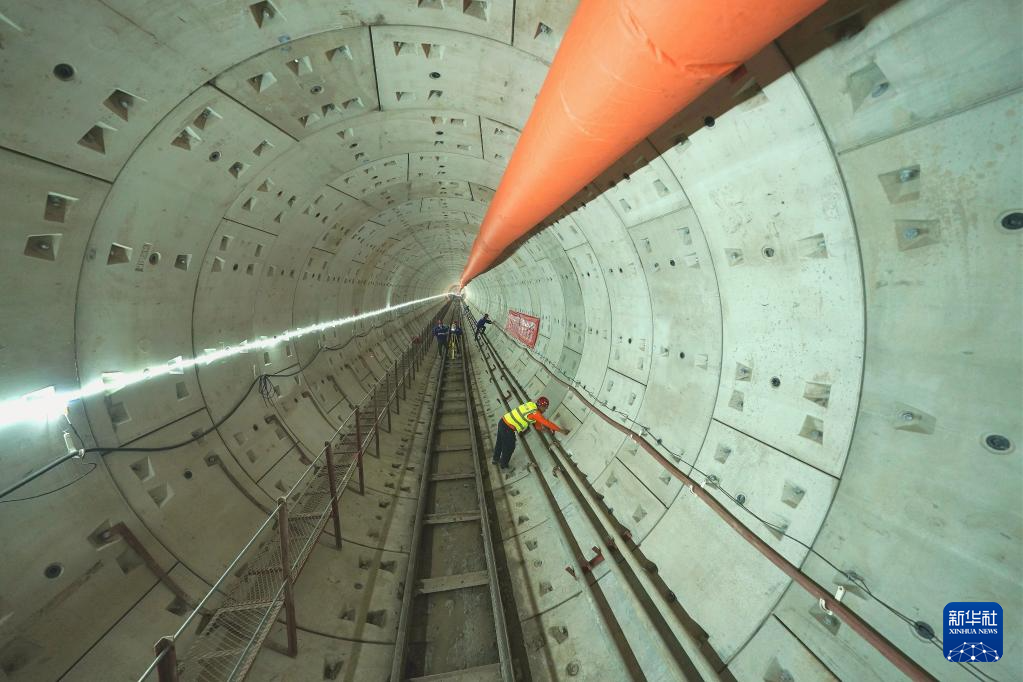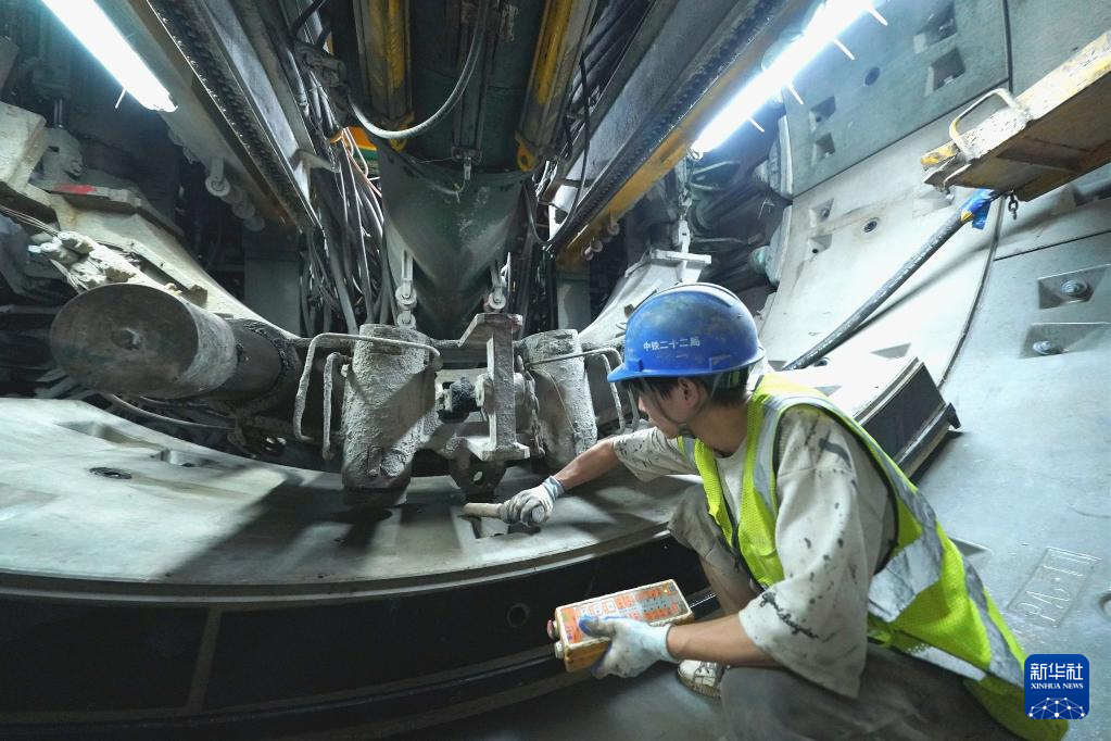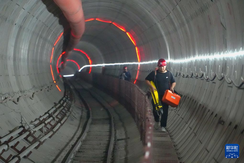 10月5日,在北京昌平区回龙观西大街地下 ,中铁二十二局集团的工作人员在巡检。新华社记者 邢广利 摄