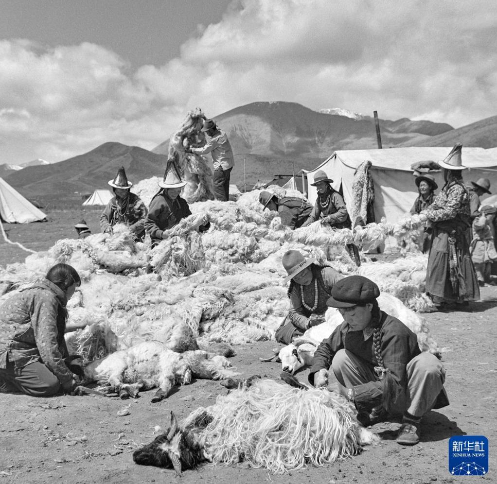 青海门沅县苏吉滩公社第一牧业队牧民正在剪羊毛。(1959年6月29日发)新华社记者 李景瑞 摄