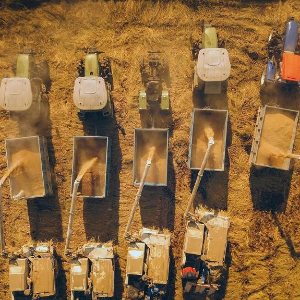 点评 俯拍的大片明亮色彩鲜艳夺目,三位劳动者动作相似,给画面带来韵律感,具有视觉表现力的呈现非常吸引人。