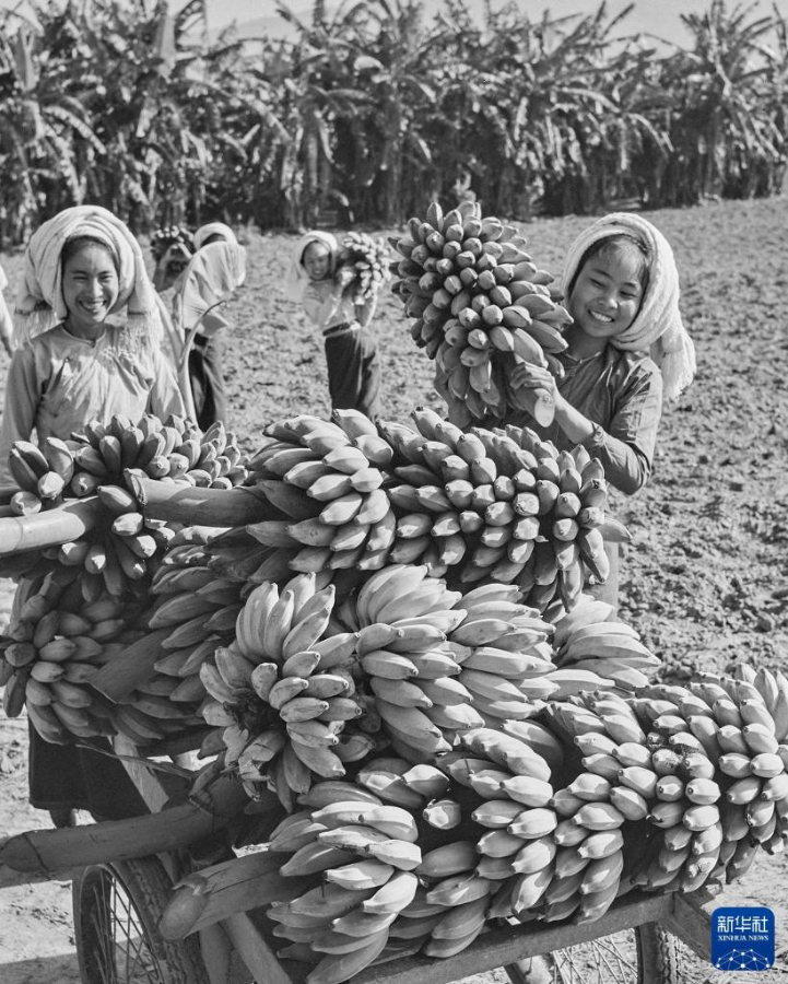 1971年8月28日,云南西双版纳农民收割香蕉。新华社发