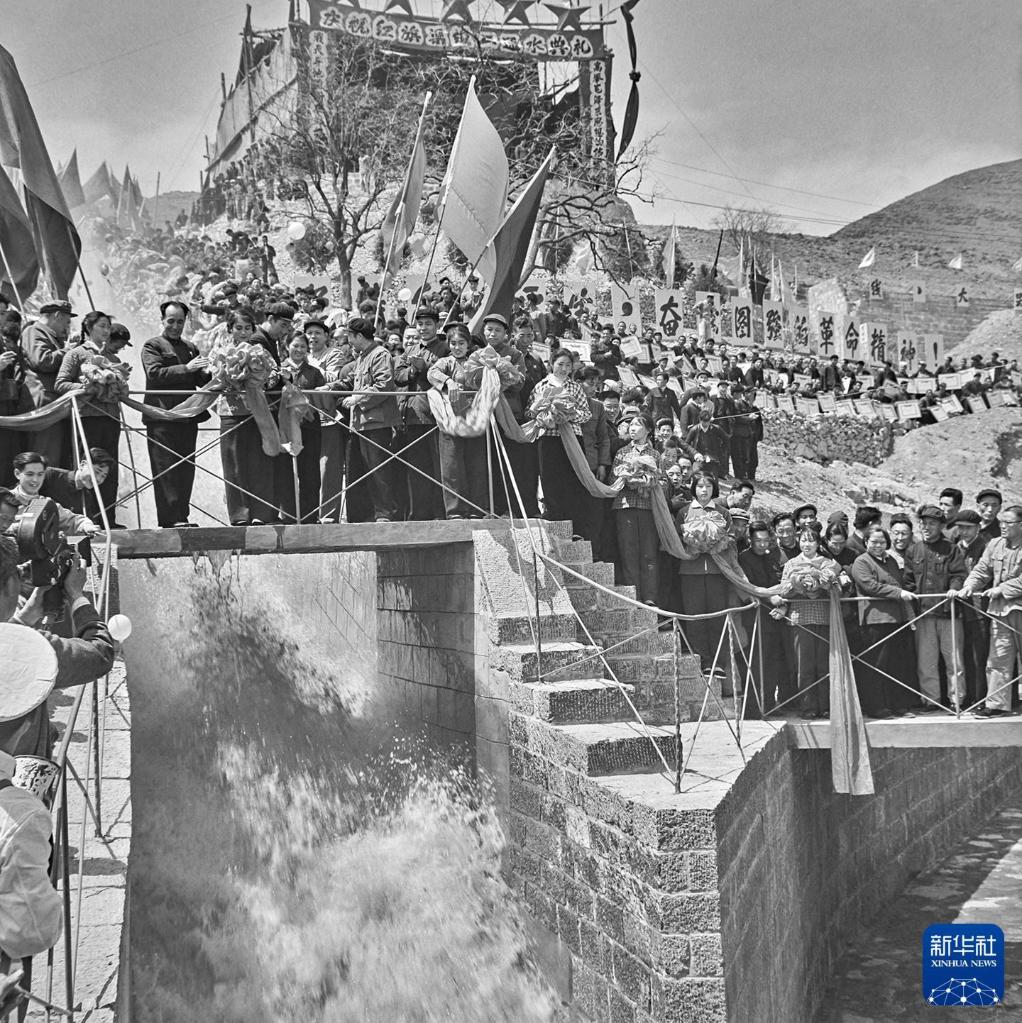 1966年4月20日,河南林县举行盛大集会,庆祝红旗渠竣工通水。 新华社记者 严世昌 摄