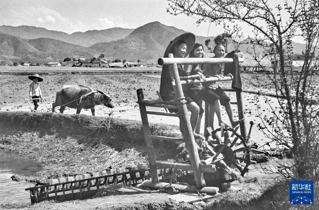 1952年,湖南醴陵县农民在车水。新华社记者 盛继润 摄