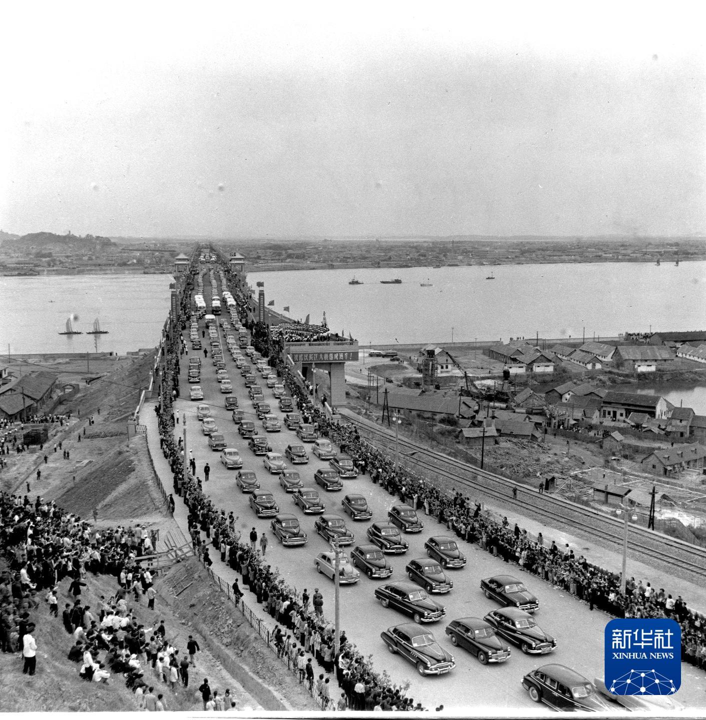 1957年10月15日,武汉长江大桥建成通车。通车典礼上,数百辆汽车浩浩荡荡驶过公路桥面。