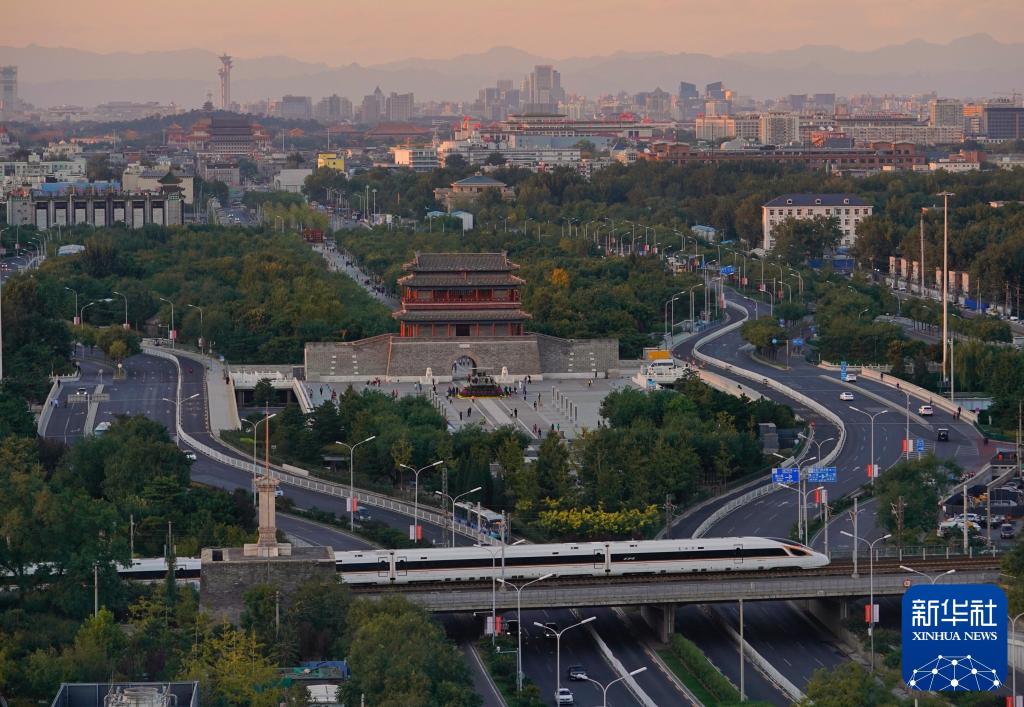 2018年10月7日,复兴号高铁列车驶过北京永定门。