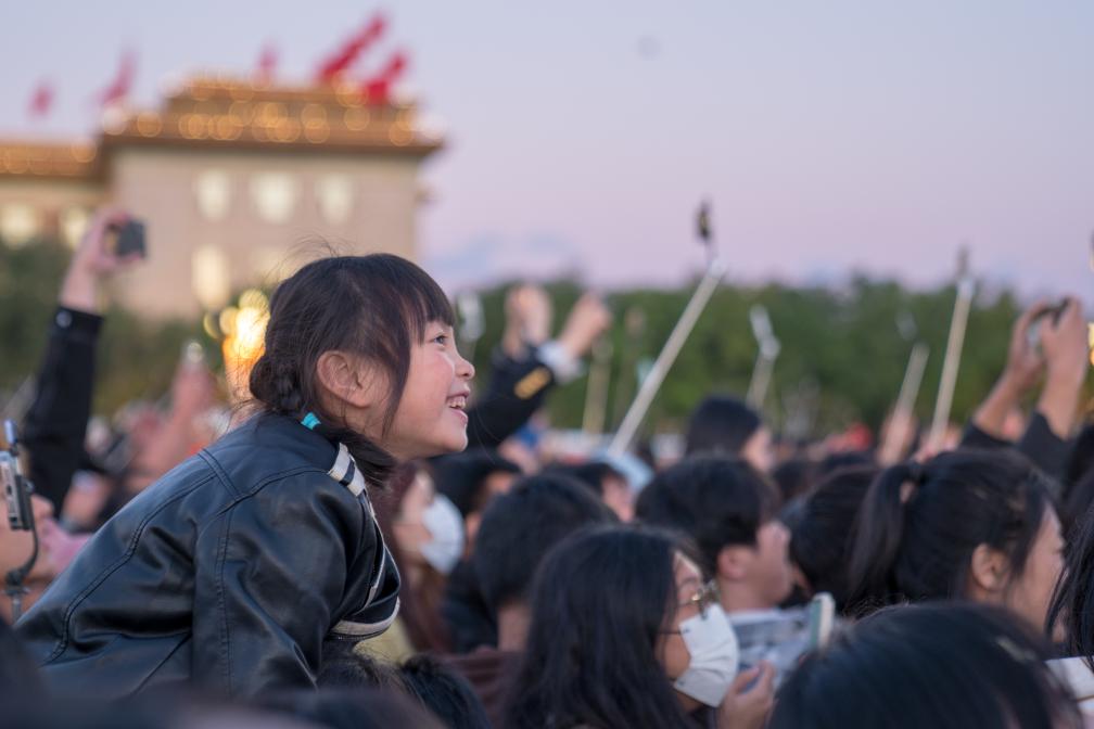 10月1日清晨,12.3万市民游客齐聚北京天安门广场,共同见证新中国75周年华诞这天五星红旗升起的历史瞬间。