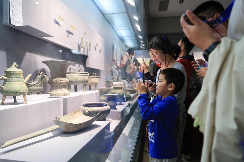 10月5日,人们在南京博物院参观。新华社发(苏阳 摄)