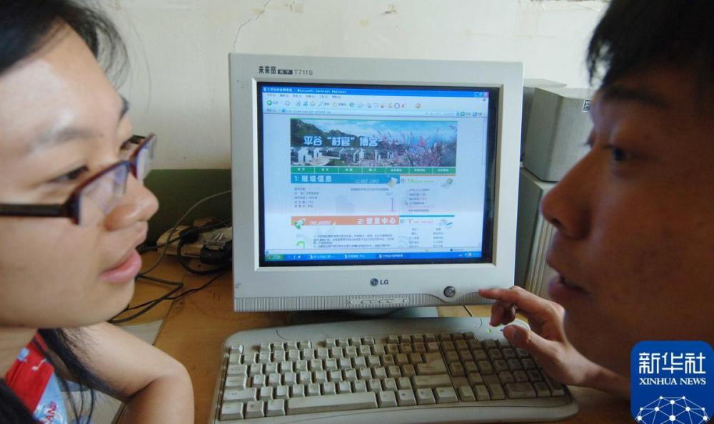2006年8月3日,在北京平谷担任“村官”的两名大学毕业生在平谷大学生“村官”博客上与其他在农村工作的大学生交流。