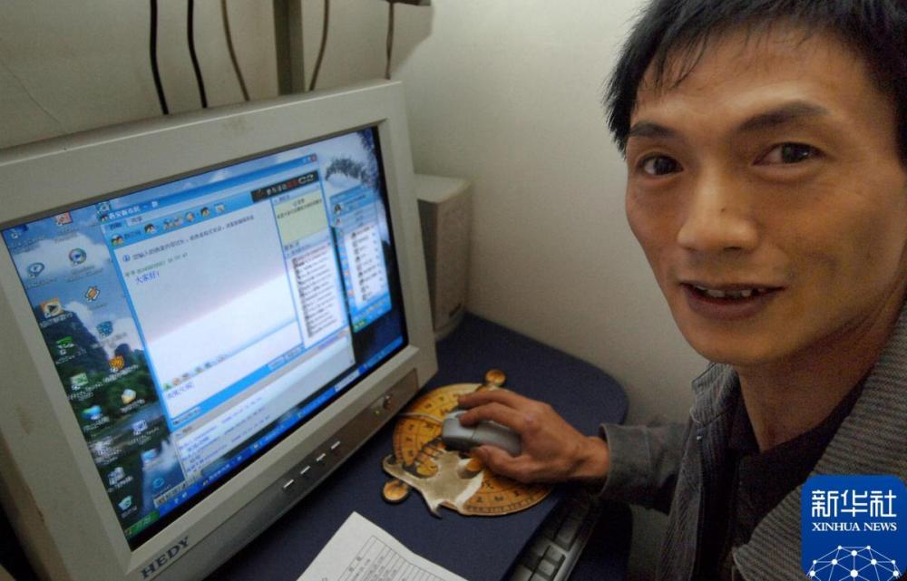 2006年10月23日,“西安新市民社区学习中心”学员在家中与“西安新市民QQ群”的同学们聊天。