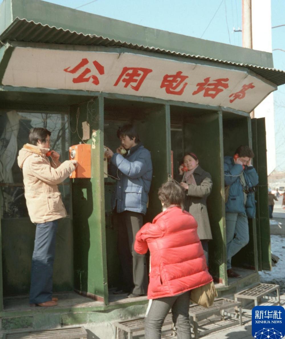 1986年拍摄的设立在北京前门大街的公用电话亭。