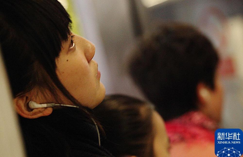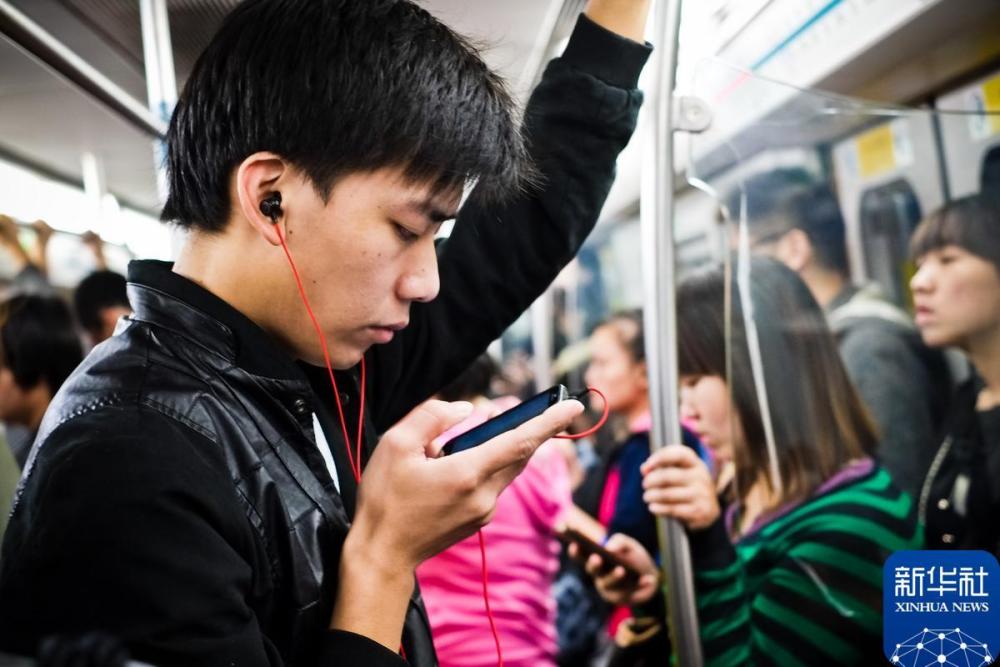 2012年11月10日,在北京地铁四号线海淀黄庄站,一名乘客在站台候车时使用手机听音乐。