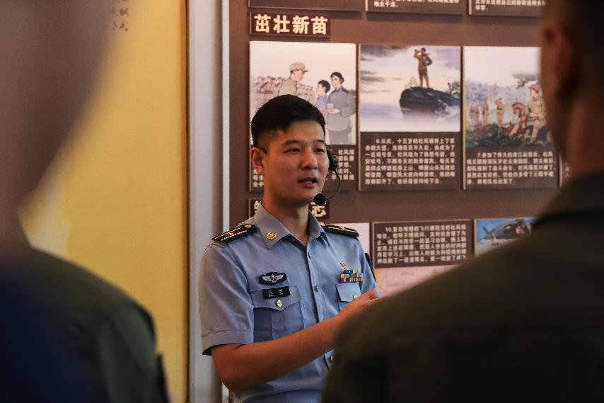 “杜凤瑞中队”荣誉室内,讲解员为官兵代表讲述杜凤瑞前辈的成长事迹。刘一鸣 摄