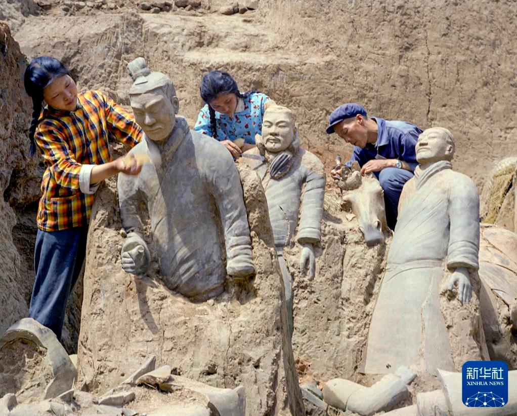 1975年9月,秦始皇陵东侧出土大批陶兵、陶马珍贵文物。新华社记者 安克仁 摄