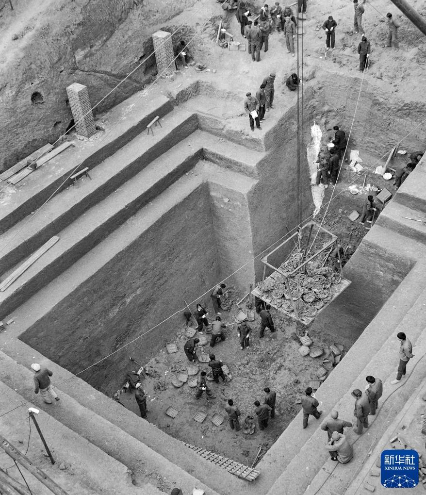 1974年8月30日拍摄的湖南长沙马王堆三号汉墓墓坑发掘施工现场。新华社发