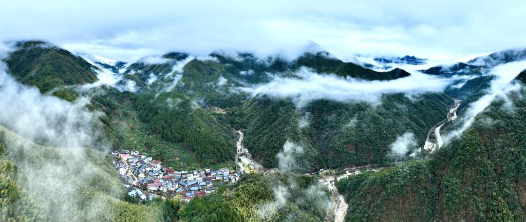 2024年1月30日,武夷山国家公园桐木村雨后云雾缭绕(无人机全景照片)。新华社记者 姜克红 摄