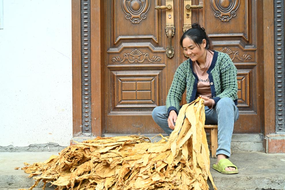 10月10日,巴木玉布木正在整理丰收的烟叶。莫色石博 摄
