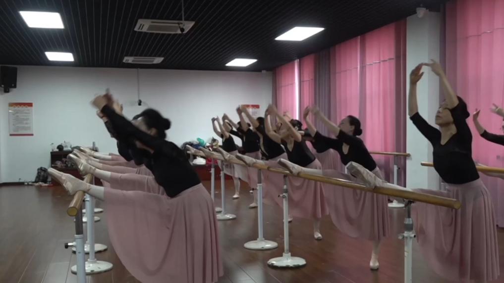 在山东老年大学芭蕾舞教室,舞蹈队员们正排练近期参赛曲目《映巷麻石街》。经过几年的学习和磨练,这些芭蕾舞队员不仅能下叉、立足尖,还多次参加全省及全国的比赛。
