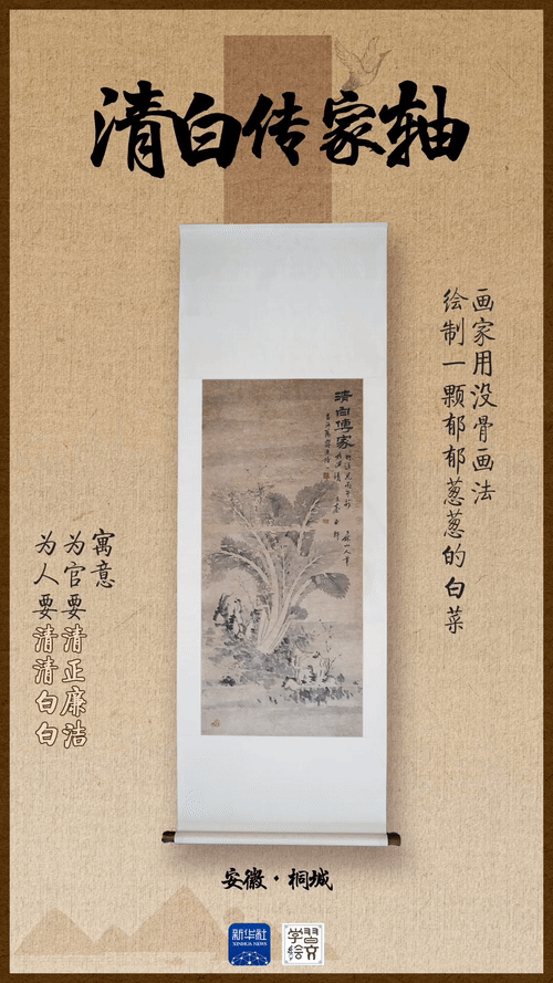 清代字画《清白传家轴》,在1985年征集于桐城市吕亭镇。叶鑫介绍,桐城人重视家风传承,这幅画悬挂于房屋的厅堂之内,以润物细无声的家风教育,让孩子们感受到要清清白白做人、做事的道理,传递了桐城人勤俭礼让、清白传家的家风传统。