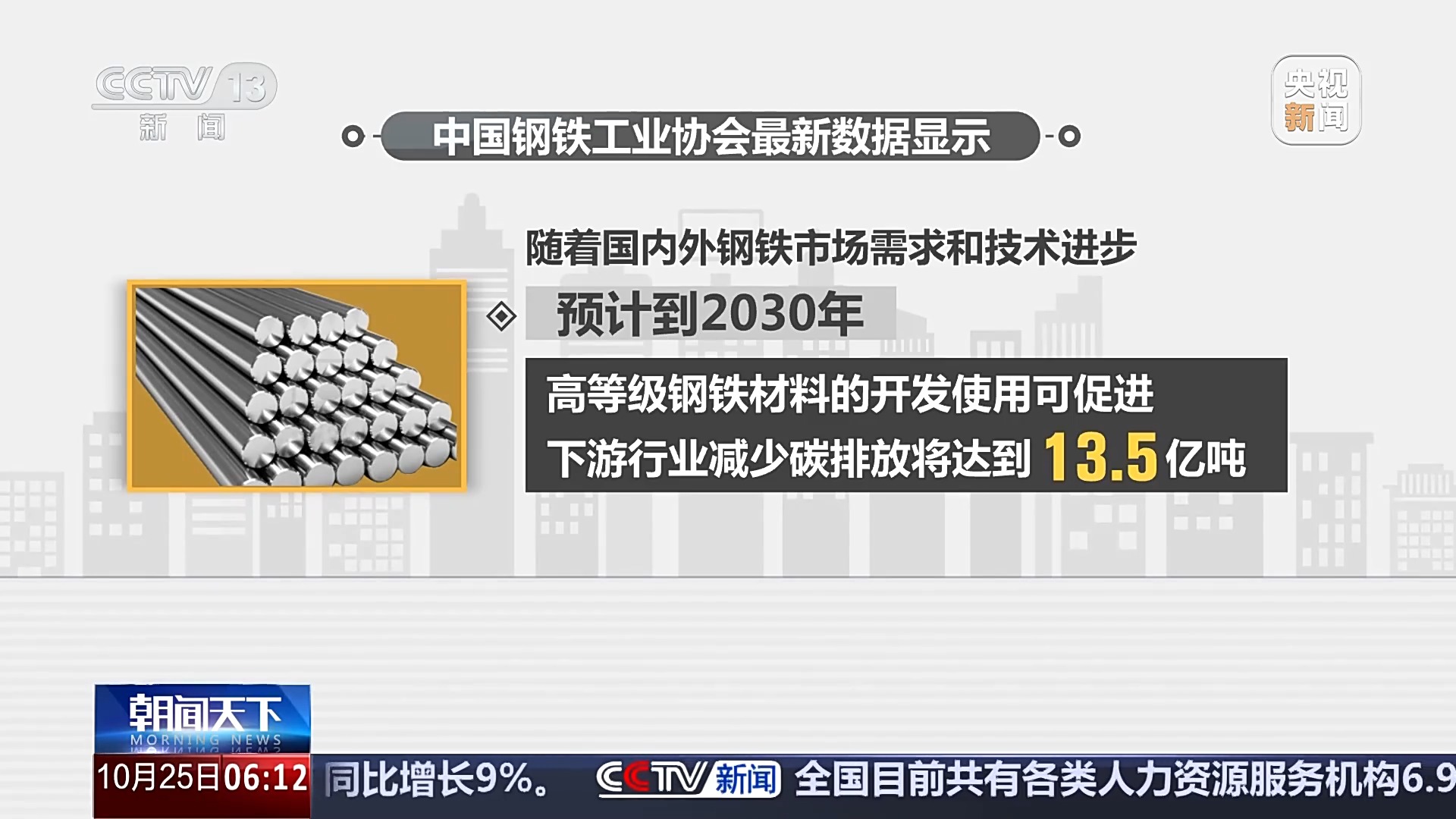 随着国内外钢铁市场需求和技术进步,预计到2030年,高等级钢铁材料的开发使用可促进下游行业减少碳排放将达到13.5亿吨。