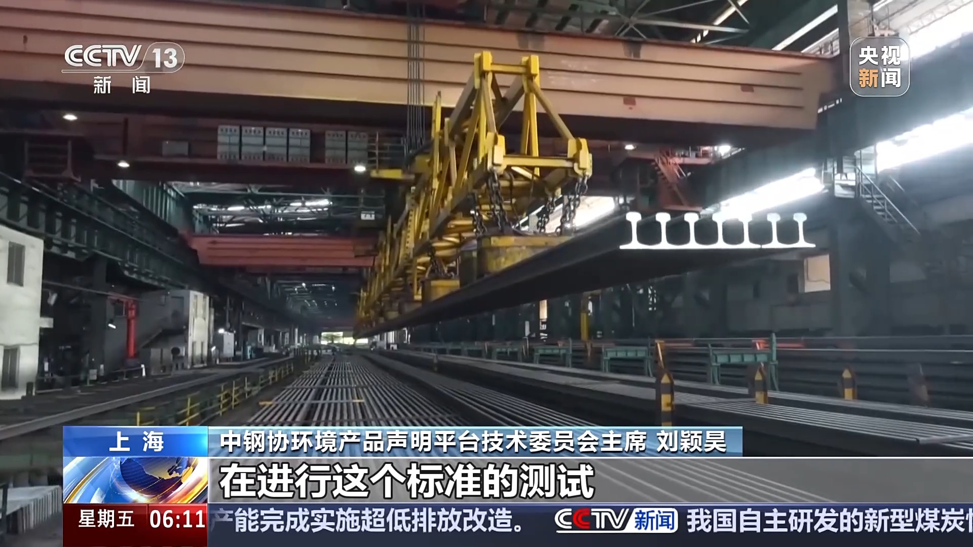 中钢协环境产品声明平台技术委员会主席 刘颖昊:我们在制定这个标准的时候,号召了国内产能接近3.3亿吨的钢铁企业一起加入,在进行这个标准的测试。这个应该也是全球数据量做基础测试最大的一个标准。我们钢铁改善了一点点,可能会对整个价值链带来非常大的一个改善。