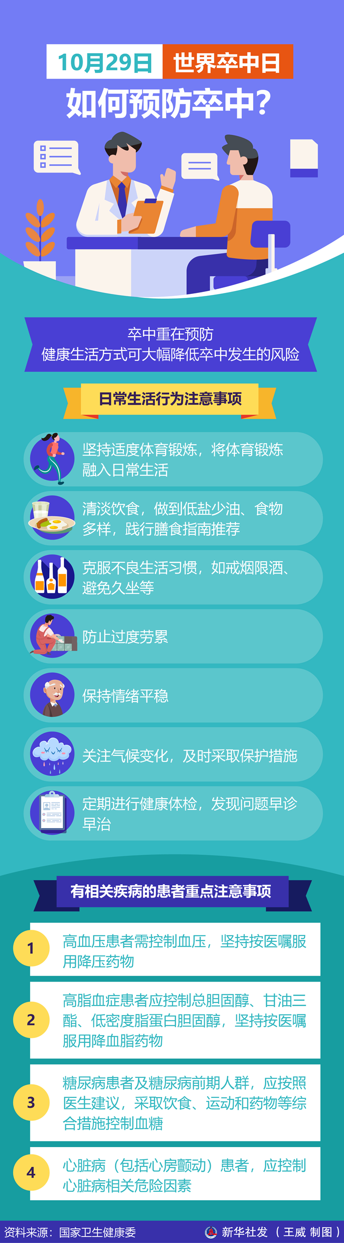 10月29日是世界卒中日。脑卒中又称“中风”,是一种急性脑血管疾病,要准确识别脑卒中的征兆,积极应对,避免“卒”不及防。