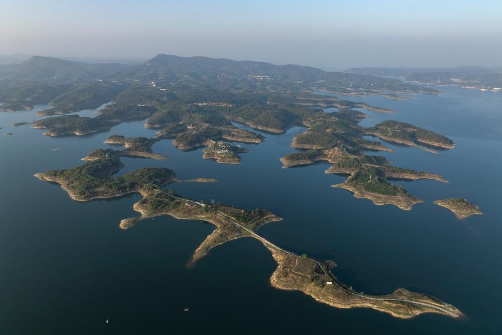 10月29日拍摄的丹江口水库(无人机照片)。新华社记者 胡竞文 摄