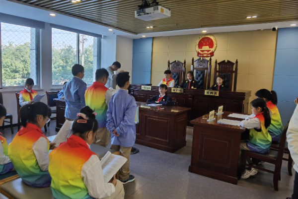 10月30日,卫岗小学的同学们沉浸式体验模拟法庭庭审。