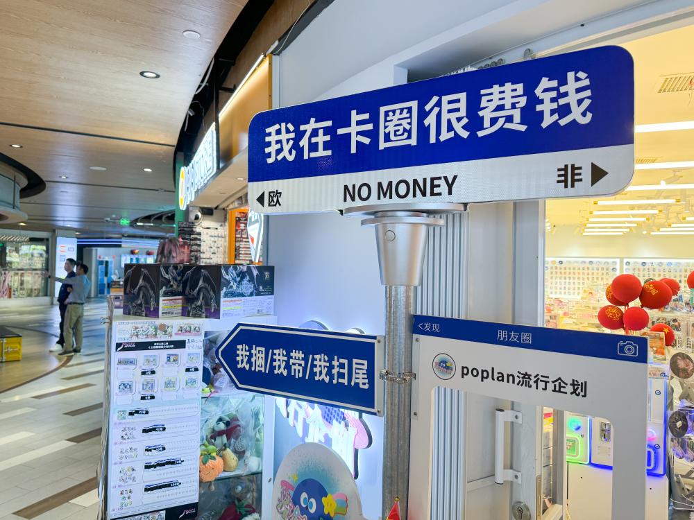 在江苏南京市一处商场卡牌盲盒销售店旁放置的广告(10月14日摄)。