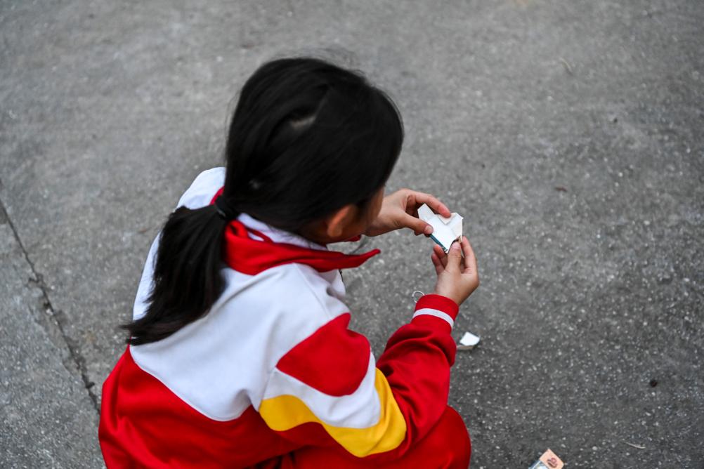 除了买盲盒抽卡牌外,部分未成年人还四处寻找烟盒折成“烟卡”,进行娱乐和交换。一些玩“烟卡”的未成年人对香烟品牌了如指掌,从垃圾桶里捡烟盒、按“烟卡等级”相互攀比、闻“烟卡”味道、怂恿身边人吸烟……