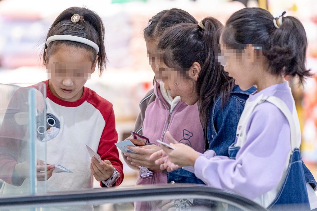 在浙江省湖州市一家百货商场,小朋友为拆到“珍藏卡”欢呼(10月27日摄)。