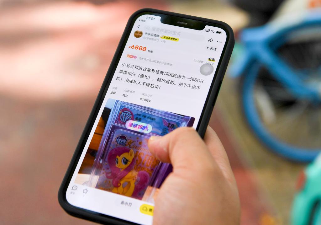 在河南省郑州市金水区一所小学附近,家长向记者展示某二手交易平台上所谓“稀有卡”的价格(10月29日摄)。