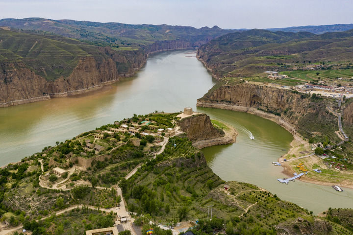 从老牛湾沿着黄河一号旅游公路一路向南,至石楼县辛关镇马家畔村,只见黄河陡然回旋,环抱一个面积2800亩的“黄土峁丘”,流出了近360度的圆形大湾,被誉为“黄河奇湾”。