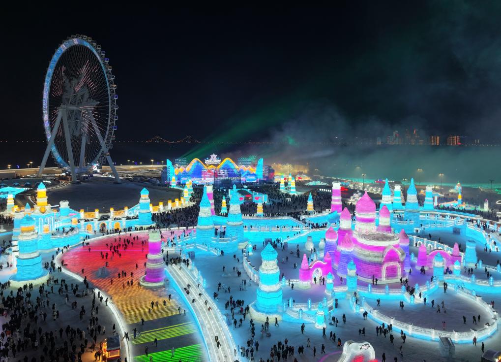 这是2024年1月哈尔滨冰雪大世界景观。新华社记者石枫 摄