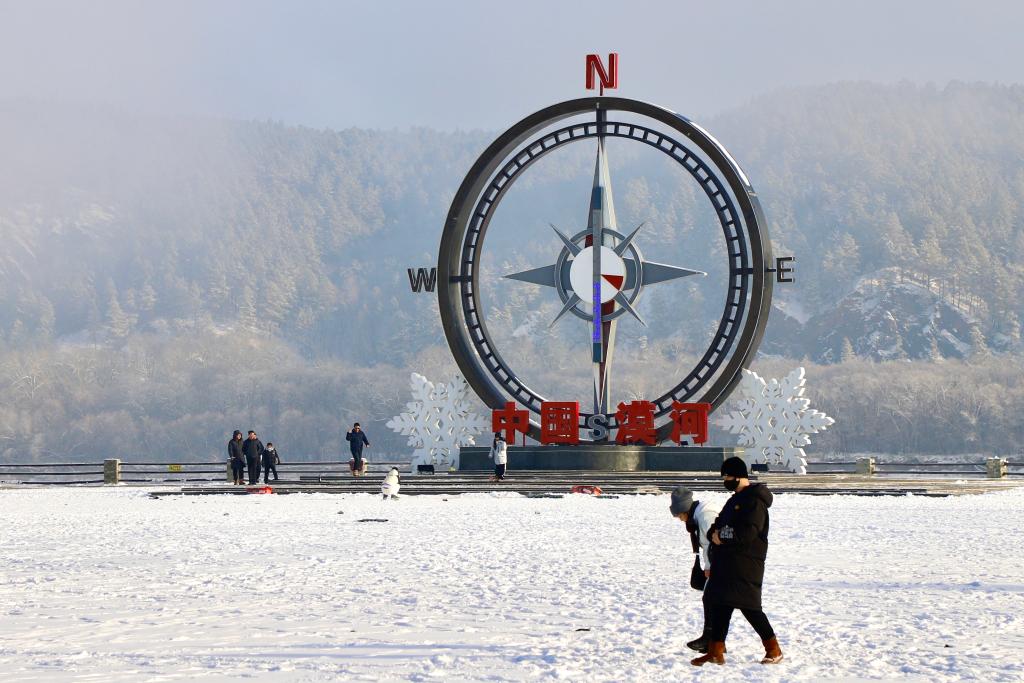 游客在黑龙江漠河游玩。新华社记者徐凯鑫 摄