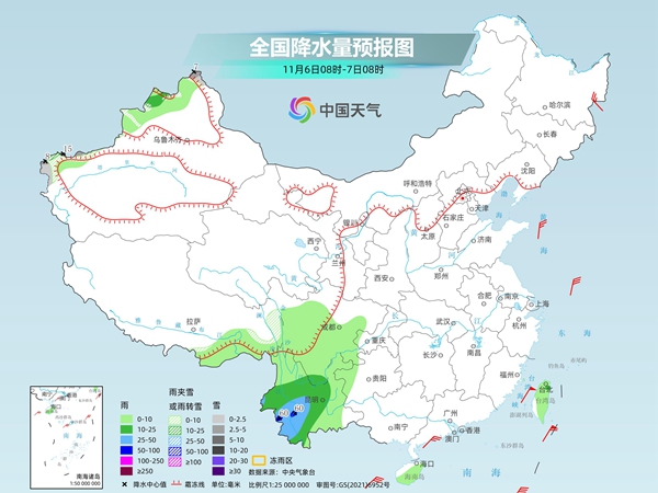 中央气象台预计,今天,新疆北部和南疆西部山区、西藏东北部等地部分地区有小到中雪或雨夹雪,其中,新疆北部高海拔山区和南疆西部山区等地局地有大到暴雪。西藏东南部、川西高原大部、四川中南部、云南、贵州西部、海南岛、台湾岛等地部分地区有小到中雨,其中,云南南部等地部分地区有大到暴雨。
