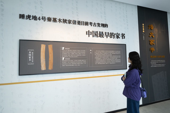 步入“简牍圣地——云梦出土秦汉简牍展”展厅,多项“之最”与“首次”在一张张老照片的映衬下,彰显出云梦在考古史上与众不同的地位。展厅内,呈现了云梦出土的睡虎地秦简、木牍家书、龙岗秦简、睡虎地汉简、“中华第一长文觚”等珍贵文物,展示了秦、楚文化的逐渐融合,证实了云梦是楚秦汉嬗递——秦汉帝国大一统进程的重要节点。