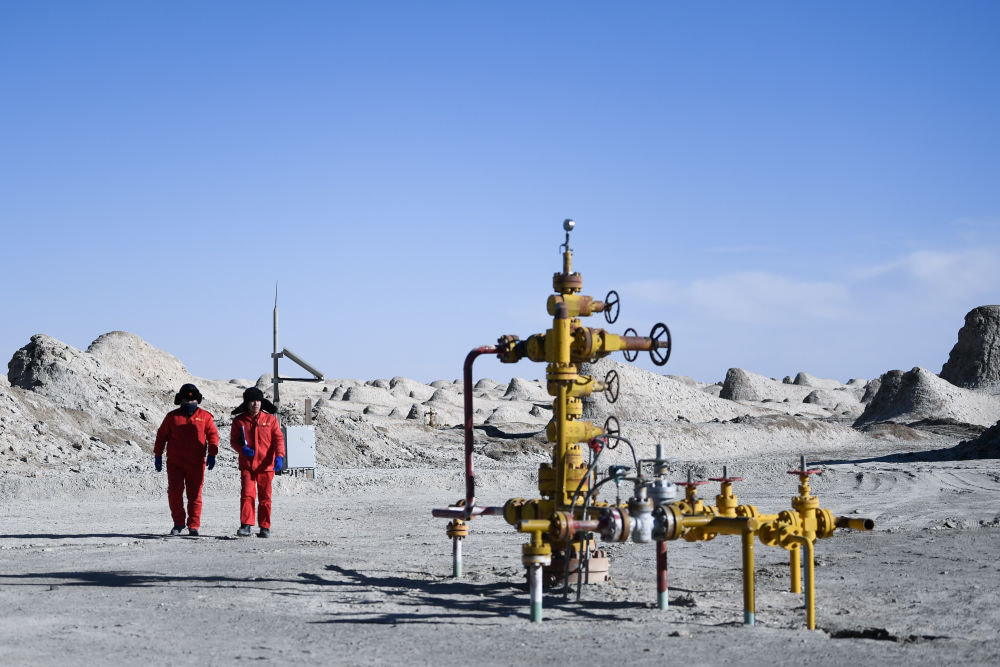 2022年1月25日,在中国石油天然气集团公司青海油田公司采气一厂九号集气站,工人在巡检集气设备。涩北气田地处青海柴达木盆地东部的戈壁,是“涩—宁—兰”管道的气源地和“西气东输”管道的主要接替气源之一,平均海拔2780米。该气田承担着青海、甘肃、西藏、宁夏四个省区多个城市的供气任务。