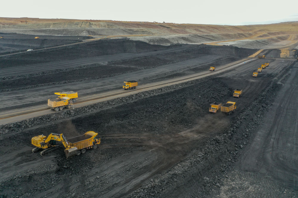 2024年9月26日,在国能新疆准东能源有限责任公司准东露天煤矿拍摄的作业现场(无人机照片)。新疆拥有丰富的煤炭资源,在立足资源优势、加大疆煤外运的同时,新疆以“煤”为基,加快构建煤制油气、煤制烯烃、煤基新材料产业链,煤炭煤电煤化工产业集群得到快速发展。2024年上半年,新疆规模以上工业原煤产量达2.4亿吨,同比增长13.4%。