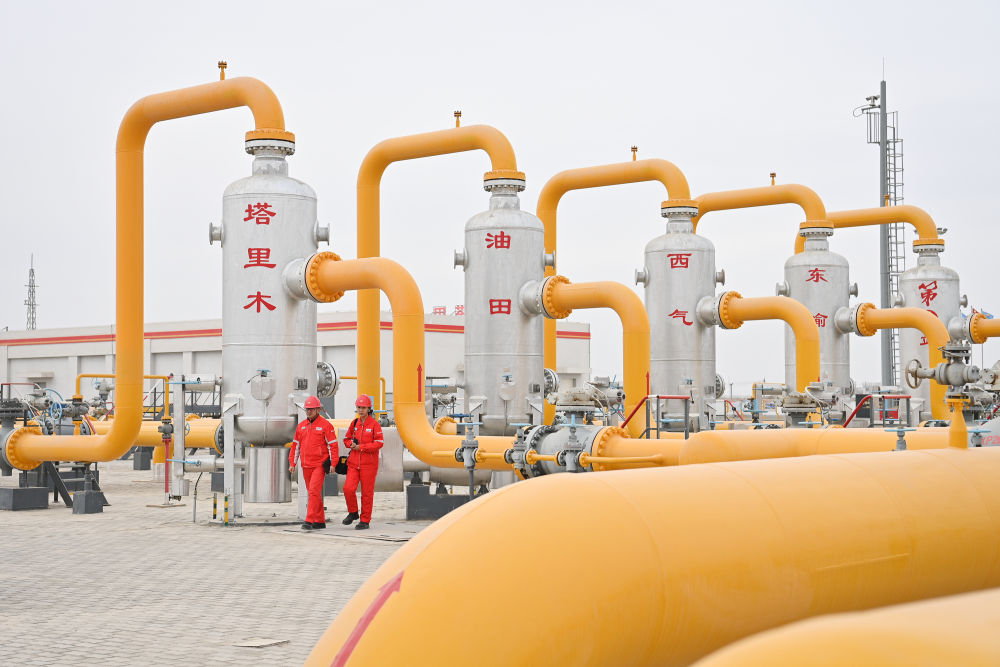 2023年2月6日,输气工在新疆塔里木油田西气东输第一站装置区进行巡检。西气东输管道系统供气范围覆盖我国西部、长三角、珠三角、华中地区的400多座城市、3000余家大中型企业,惠及近5亿人口。截至2024年9月底,西气东输工程已累计输送天然气超9800亿立方米。