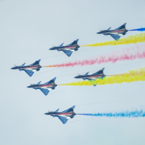 开幕式上,全球瞩目的歼-35A一出场便大仰角拉升、大半径横滚,展现绝佳机动性能;中国空军八一飞行表演队上演“六机筋斗”“四机叠罗汉”等动作,引发现场观众阵阵欢呼。